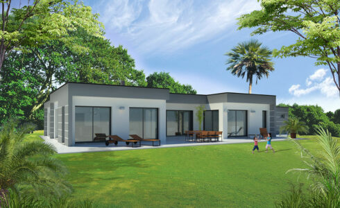 modélisation 3D d'une construction de maison neuve design et moderne Gueudry