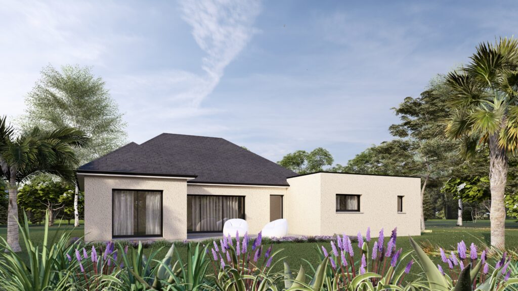 Le modèle 2542 offre une maison de plain-pied de 126m², pensée pour ceux qui recherchent espace et fluidité dans leur quotidien. La grande pièce de vie, baignée de lumière, propose un séjour convivial ouvert sur une cuisine moderne, idéale pour vivre et recevoir sans contraintes. Attenant au séjour-cuisine, un cellier vient compléter intelligemment cet espace afin de vous offrir un espace supplémentaire de rangement. Trois chambres généreuses composent l’espace nuit, garantissant à chacun un cadre intime et confortable. Pour plus de fonctionnalité, la maison dispose d’une salle d’eau bien agencée attenante à deux des chambres ainsi que de WC indépendants. Une autre salle d’eau est présente et attenante à un dressing, lui-même attenant à l’une des chambres, pour tout avoir à portée de main. Un garage intégré complète cette réalisation sur mesure, offrant des solutions pratiques de stationnement et de rangement. Cette maison allie parfaitement design contemporain, fonctionnalité et confort de vie.