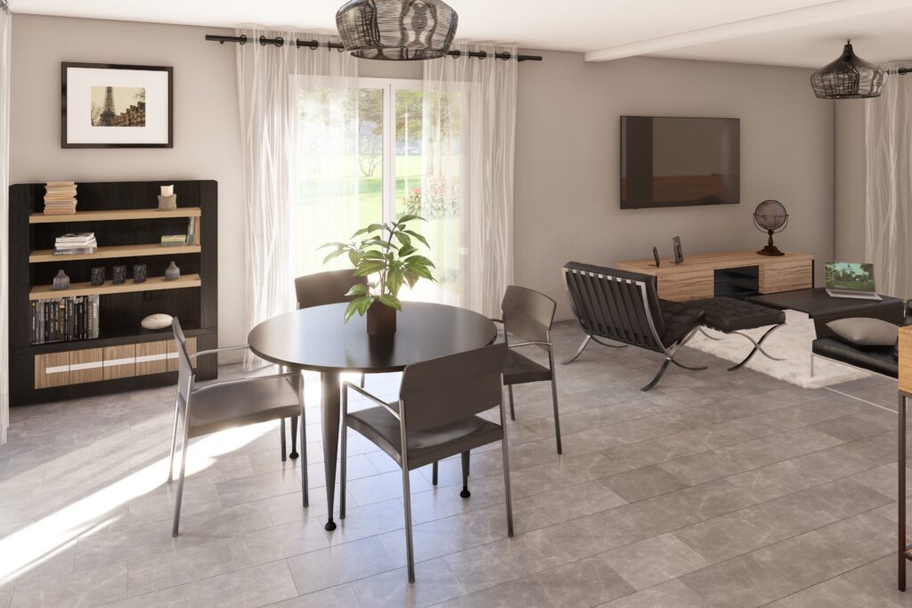 Le modèle 2540, conçu de plain-pied, propose une organisation intérieure moderne et parfaitement adaptée aux besoins de la vie familiale. Avec ses 142m² habitables, cette maison se distingue par un espace de vie central spacieux et lumineux, composé d’un séjour-salon convivial ouvert sur une cuisine fonctionnelle, idéal pour les moments de partage. Un cellier attenant vient compléter cet espace pour plus d’espace de stockage et de rangement.