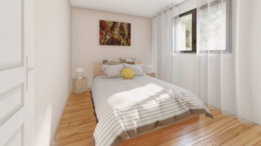 Le modèle 2539 développe une maison de plain-pied de 149m², offrant des volumes généreux. La grande pièce de vie centrale, baignée de lumière naturelle, accueille un salon chaleureux et une cuisine ouverte, créant un espace convivial et fonctionnel. Cet espace possède un cellier attenant à l’entrée et au séjour-cuisine, vous faisant bénéficier d’un espace de stockage supplémentaire adaptable à vos besoins. La partie nuit comprend deux chambres spacieuses, conçues pour garantir calme et confort. L’une d’elle est attenante à un bureau afin de vous offrir un cadre propice au travail et à la concentration tandis que l’autre est attenante à un dressing et à une salle d’eau pour un quotidien facilité. Des WC indépendants viennent compléter l’ensemble pour plus d’intimité. Un garage intégré ajoute un véritable atout à cette maison sur mesure, en proposant une solution idéale pour stationner ou organiser ses rangements. Cette réalisation séduira ceux qui recherchent un intérieur spacieux, lumineux et pensé pour leur bien-être.