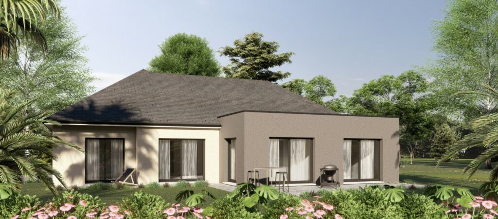 Le modèle 2535 offre une maison de plain-pied de 123m², pensée pour combiner espace et confort au quotidien. L’entrée s’ouvre sur une vaste pièce de vie baignée de lumière naturelle, intégrant un séjour accueillant et une cuisine fonctionnelle, idéale pour partager des instants conviviaux. Un cellier attenant à la cuisine vient ajouter un espace de stockage supplémentaire non-négligeable. La partie nuit est composée de quatre chambres bien proportionnées, créant des espaces intimes pour chaque membre de la famille. Une salle de bain pratique ainsi que des WC séparés viennent compléter l’ensemble. Un garage intégré vient enrichir ce modèle sur mesure, offrant un espace supplémentaire pour le stationnement ou le rangement. Cette maison séduit par son agencement clair et son équilibre parfait entre confort familial et fonctionnalité moderne.