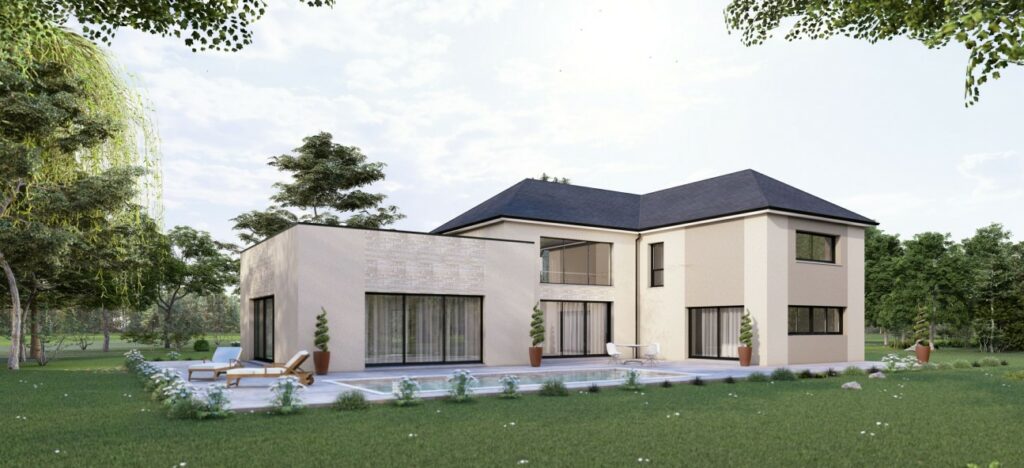 Le modèle 25144-R+1 séduit par ses volumes exceptionnels et son agencement intérieur pensé pour le confort de toute la famille. Développée sur deux niveaux, cette maison offre une généreuse surface habitable de 300m², parfaitement répartie pour un quotidien agréable et fonctionnel.