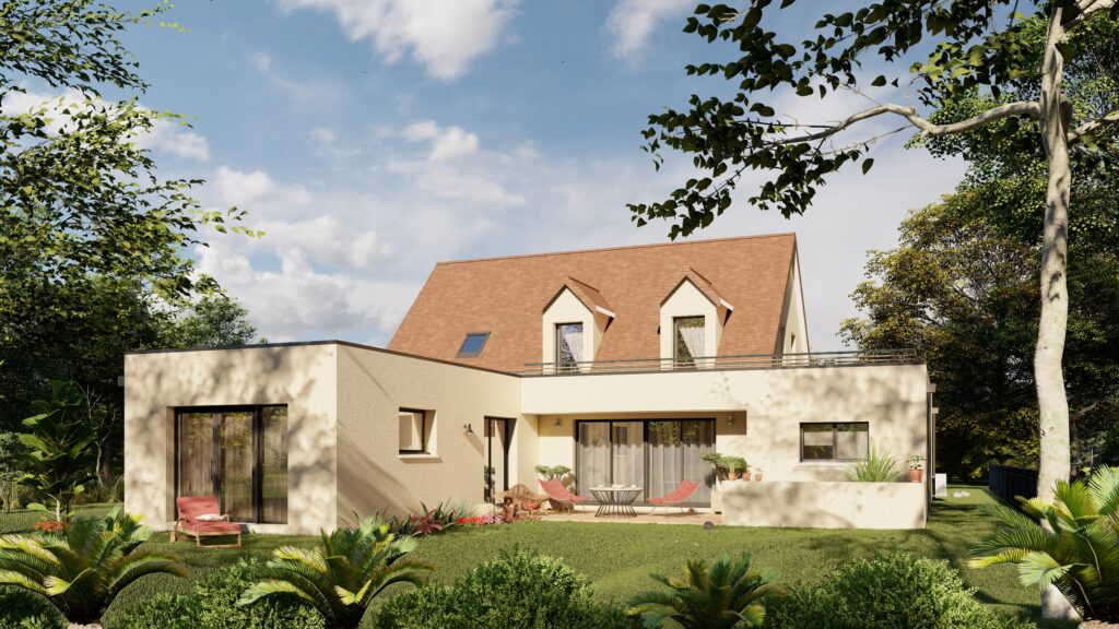 Le modèle 2599 – R+Combles se distingue par ses volumes généreux et son aménagement intérieur pensé pour le confort au quotidien. Avec une surface habitable de 182m², cette maison à étage offre un cadre de vie spacieux et fonctionnel.