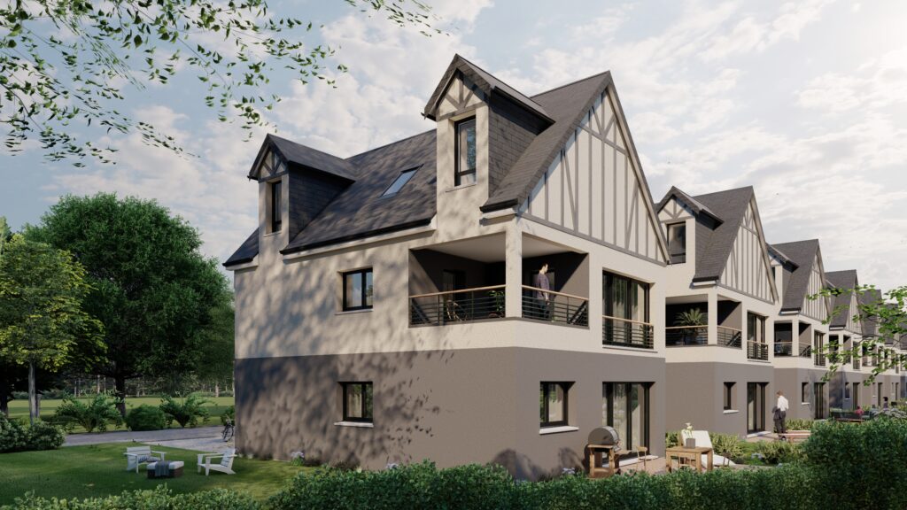 Le modèle 25163 est un projet locatif pensé pour une implantation en lotissement, mêlant accessibilité, optimisation des surfaces et fonctionnalité. Il se compose de deux logements indépendants, offrant des typologies différentes et adaptées à une diversité de profils de locataires. Le logement 1, de plain-pied, développe une surface habitable de 70 m². Parfaitement adapté aux seniors ou personnes à mobilité réduite, il comprend un espace de vie central convivial avec séjour-salon et cuisine ouverte, deux chambres confortables, une salle d’eau bien agencée et des WC indépendants. Ce logement privilégie la simplicité d’usage et le confort quotidien sur un seul niveau. Le logement 2, aménagé en R+Combles, propose une surface de 102 m². Idéal pour une petite famille, il offre une belle pièce de vie au rez-de-chaussée avec séjour-salon lumineux et cuisine ouverte. Une chambre et une salle d’eau complètent le niveau bas, tandis que les combles aménagés accueillent deux chambres supplémentaires et une salle de bain, offrant ainsi un espace nuit distinct et intime. Les deux logements disposent d’entrées indépendantes, assurant la tranquillité et la vie privée de chacun. Leur conception assure une bonne gestion des volumes, un ensoleillement naturel et une logique de construction optimisée pour la location en résidence groupée. Le modèle 25163 s’inscrit dans une démarche de rentabilité et de praticité, pensé pour répondre aux besoins actuels du marché locatif, tout en s’intégrant harmonieusement à un environnement de lotissement.